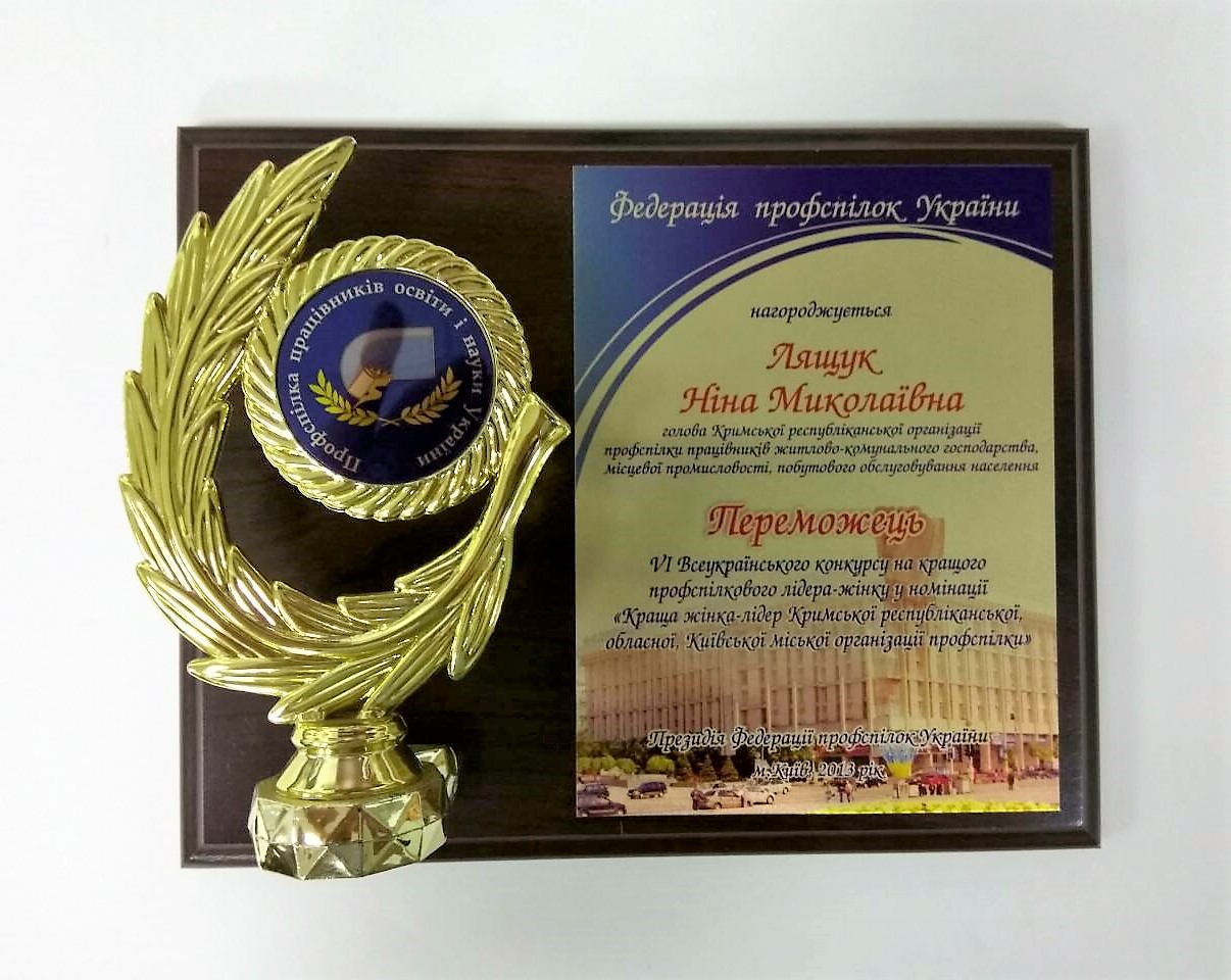 Плакетка нагородна (ДСП) + статуетка пластикова на вибір (Див.розділ “Пластикові статуетки”). Макет оформлення диплому розробляється дизайнером згідно Ваших побажань. Дана модель нагороди представлена у 2 розмірах: 30*25см, 25*20см.